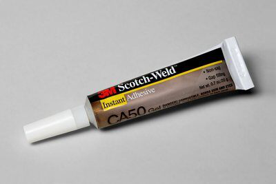3M™ Scotch-Weld™ CA50快干胶是一种从挤压瓶中挤出薄粘接线容易涂敷并快速固化的胶水。该氰基丙烯酸酯胶粘剂用柔性容器分配;精确捏出一小滴或挤出稳定的大珠