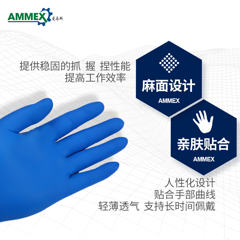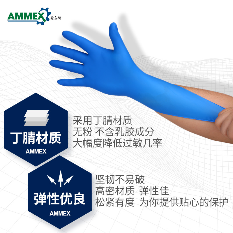 爱马斯一次性丁腈手套,不含乳胶成分,不致过敏;采用超薄技术精制而成,贴肤舒适,减少手部疲劳;同时拥有良好的拉伸强度、耐穿刺性能。
