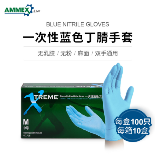 爱马斯一次性蓝色丁腈手套,不含乳胶成分,不易导致过敏;采用超薄技术精制而成,贴肤舒适,减少手部疲劳;同时拥有良好的拉伸强度、耐穿刺性能。