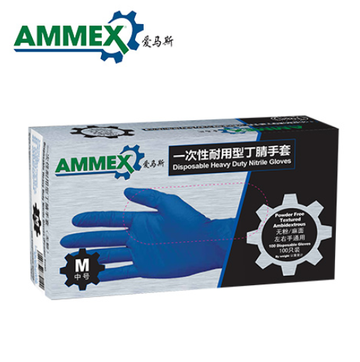 APFNCHD100一次性丁腈手套(耐用型,无粉,麻面,深蓝色)