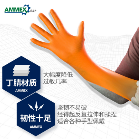 GWON一次性丁腈手套(超厚型,无粉,麻面,橙色)