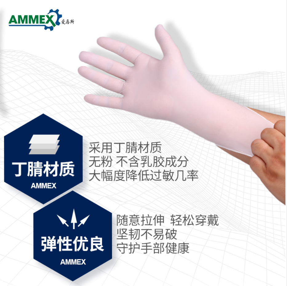 爱马斯一次性丁腈手套,不含乳胶成分,不易导致过敏;采用超薄技术精制而成,贴肤舒适,减少手部疲劳;同时拥有良好的拉伸强度、耐穿刺性能。