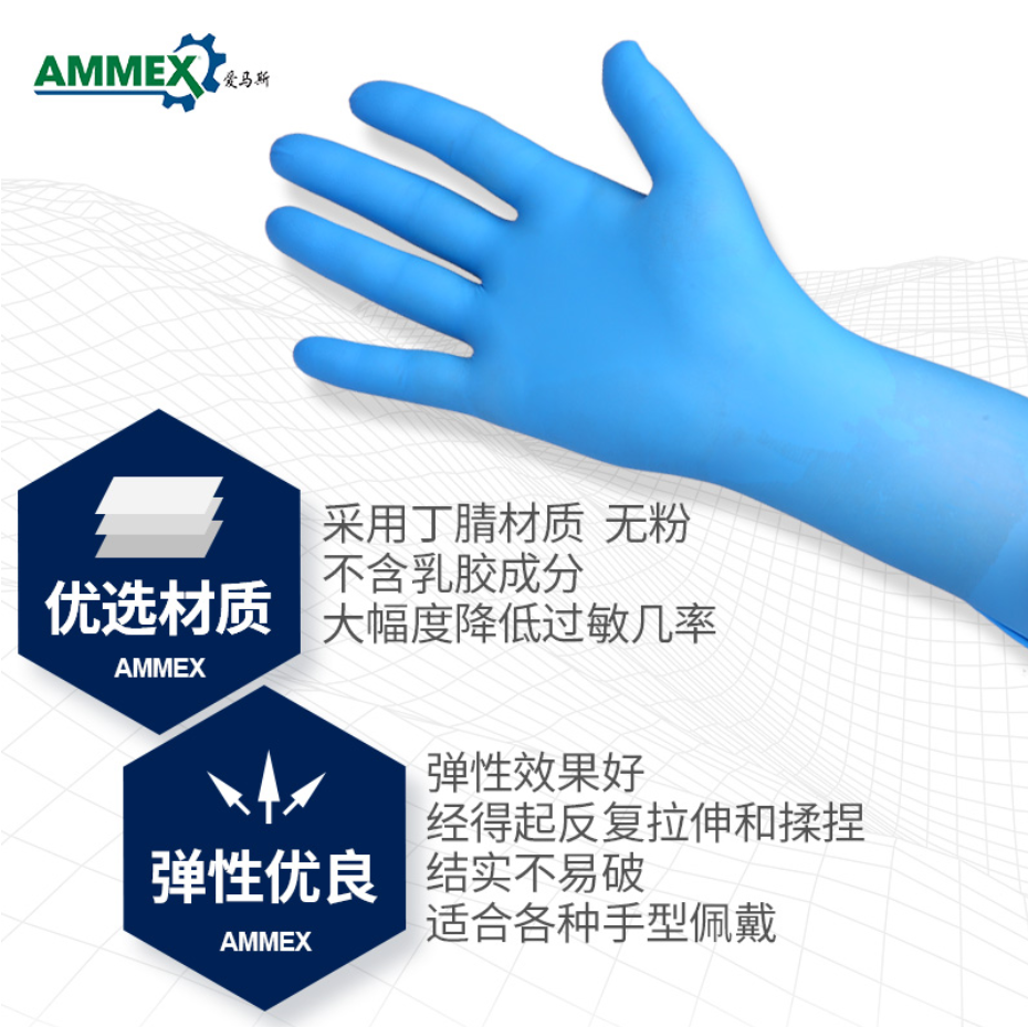 爱马斯一次性丁腈手套,不含乳胶成分,不易导致过敏;采用超薄技术精制而成,贴肤舒适,减少手部疲劳;同时拥有良好的拉伸强度、耐穿刺性能。